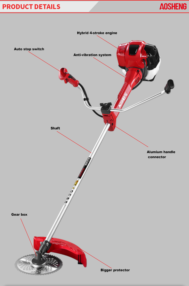 محرك عالي الأداء، الإزاحة 33CC. الاستخدام المهني يفتح القفار حجم الأنبوب 26 مم * 1.5 مم، عمود مرن قوي. عرض القطع 420 ملم عمر أكثر من 150 ساعة