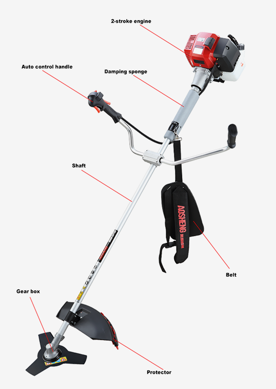 محرك عالي الأداء، الإزاحة 33CC. الاستخدام المهني يفتح القفار حجم الأنبوب 26 مم * 1.5 مم، عمود مرن قوي. عرض القطع 420 ملم عمر أكثر من 150 ساعة