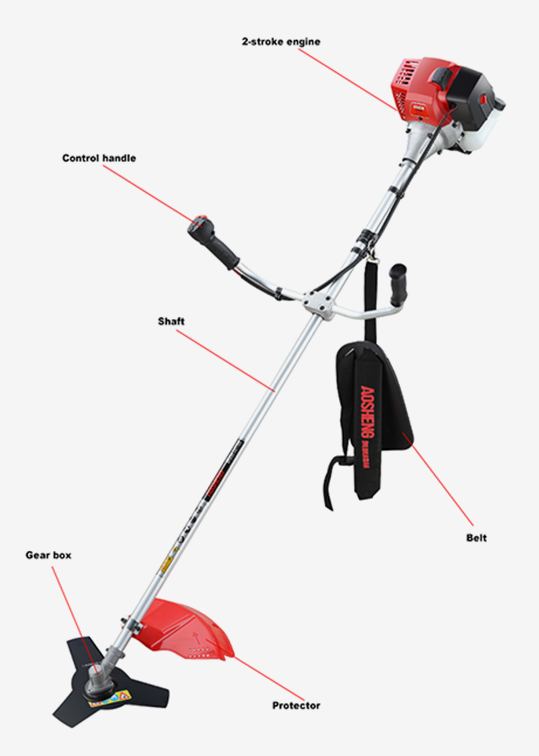 محرك عالي الأداء، الإزاحة 33CC. الاستخدام المهني يفتح القفار حجم الأنبوب 26 مم * 1.5 مم، عمود مرن قوي. عرض القطع 420 ملم عمر أكثر من 150 ساعة