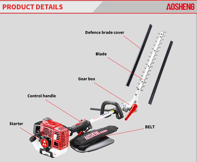 محرك عالي الأداء، الإزاحة 33CC. الاستخدام المهني يفتح القفار حجم الأنبوب 26 مم * 1.5 مم، عمود مرن قوي. عرض القطع 420 ملم عمر أكثر من 150 ساعة