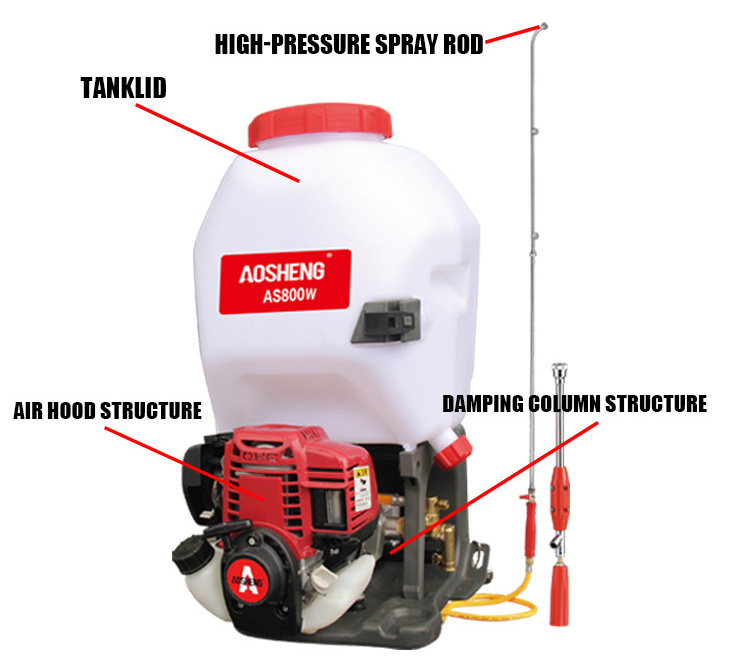 محرك عالي الأداء مع ملحقات عالية الجودة. مضخة ضغط المواد النحاسية، مقاومة للتآكل. تأثير الانحلال العالي. يستخدم في الزراعة والوقاية من الأوبئة والتطهير.